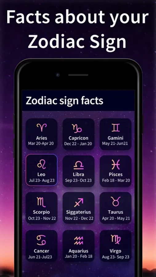 The zodiac app includes free horoscopes for all zodiac horoscope signs
