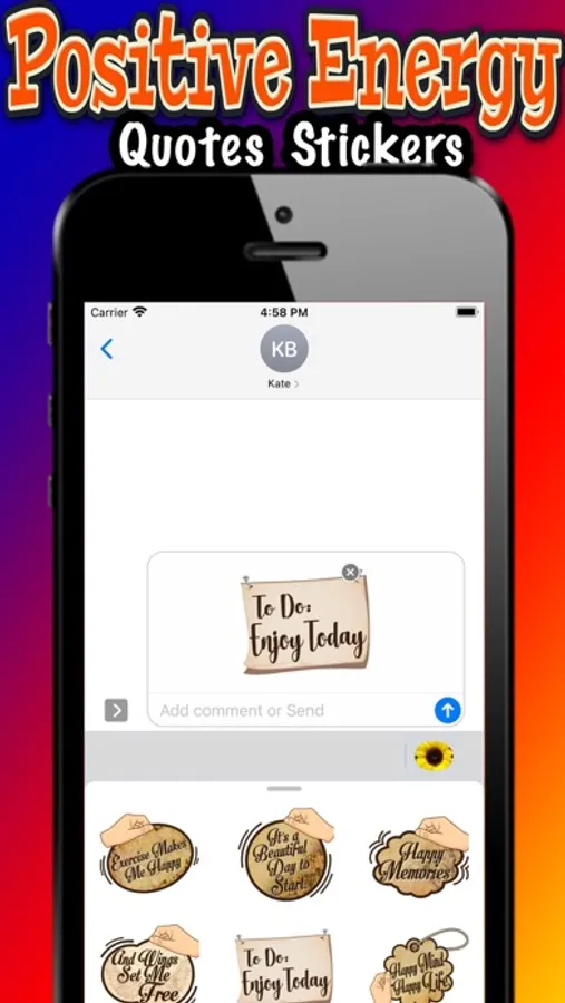 Send Positive Energy Quotes Stickers to your friends and Chat easily with them,Show them various of emotion expression such as encourage, positive mindset, funny, happy and more.