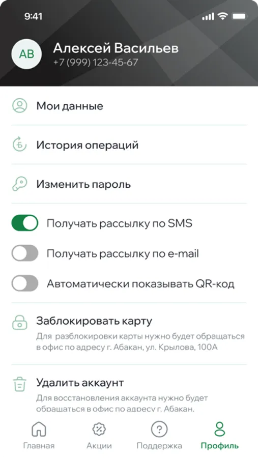 Мобильное приложение позволяет обладателям бонусных карт оперативно получать следующую информацию: