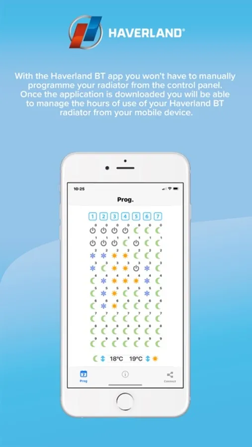 With the Haverland BT app you won’t have to manually programme your transmitter from the control panel. Once the application is downloaded you will be able to manage the hours of use of your Haverland BT transmitter from your mobile device.