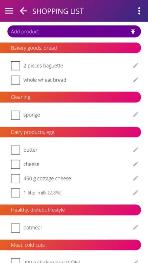 • ADD PRODUCTS TO YOUR LIST EASILY AND QUICKLY: most products can be quickly added to the list by our dictionary-based autocomplete function, or you can simply add multiple products to the list by using voice input.