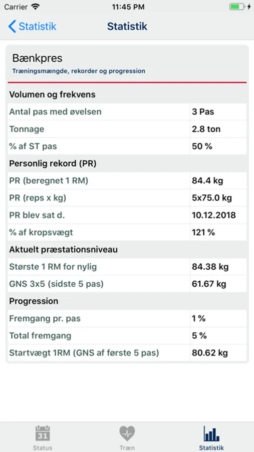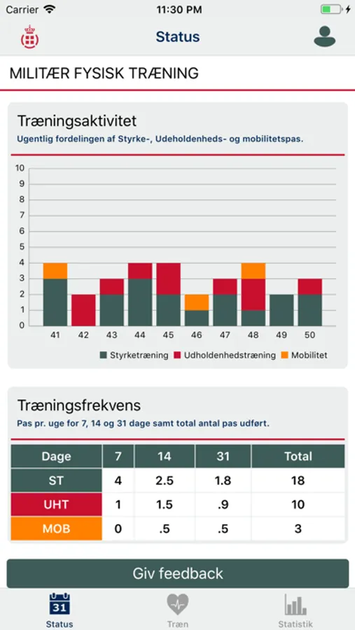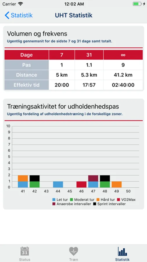 • Se status over din træningsfrekvens.