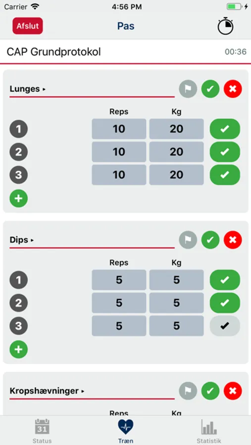 • Tilføj ekstra sæt og øvelser til et pas.
