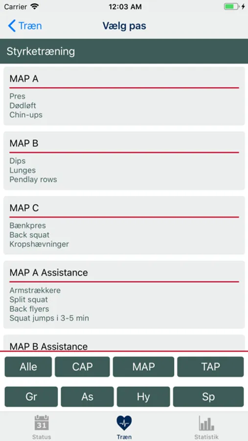 • Design en individuel træningsplan ud fra din funktion eller vælg en træningsplan fra listen.