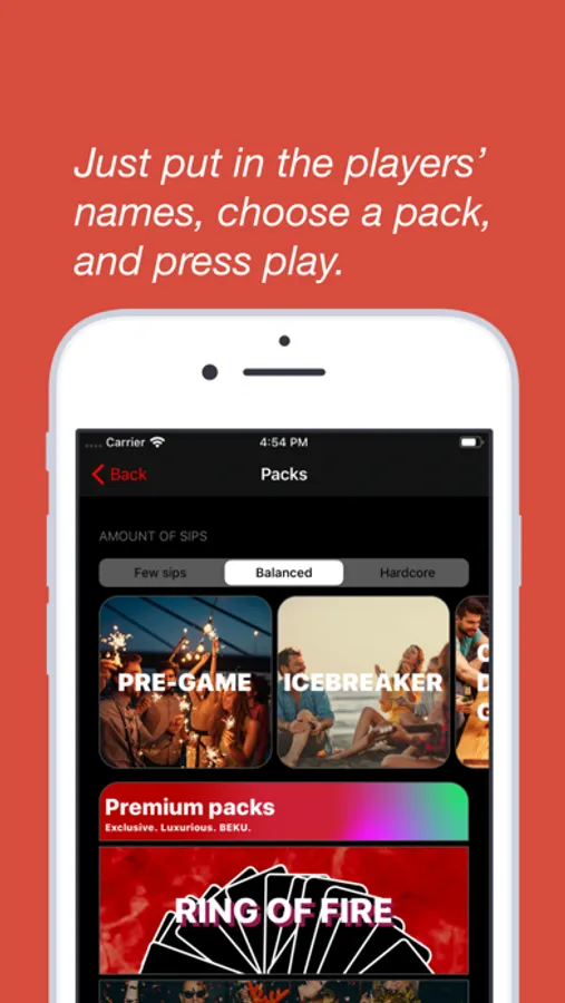 A BEKU is a drinking game, that you can use to give your night a good start. The app entertains with exciting challenges and thought-provoking questions. Just put the players' names in the app, and play. You are about to have an unforgettable night.