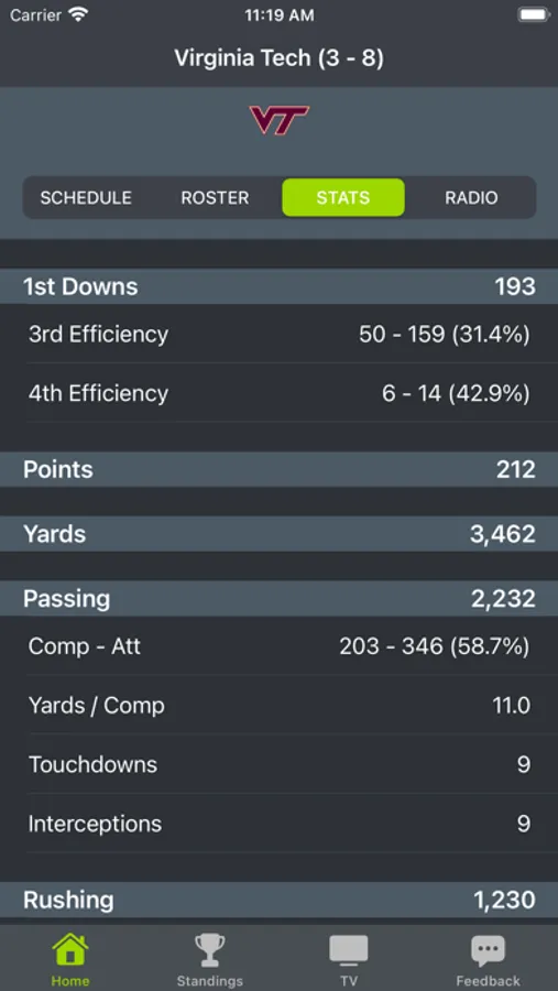 Head-to-head matchups for all of the Virginia Tech football games. Link to live radio, get scores, schedules, rosters, tv channels, and stats.