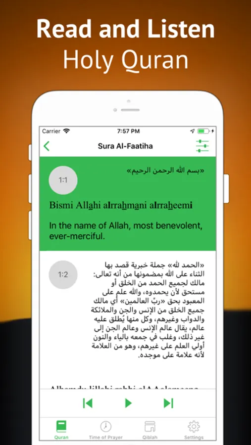 Read and listen Quran in English and Arabic. The app contains Prayer Reminders and Qibla Compass.