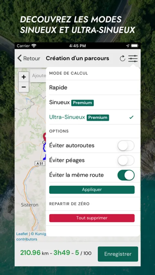 Créez votre prochains parcours moto à l'aide du générateur de boucle et le mode de calcul Sinueux ou Ultra-Sinueux, c'est rapide et efficace.