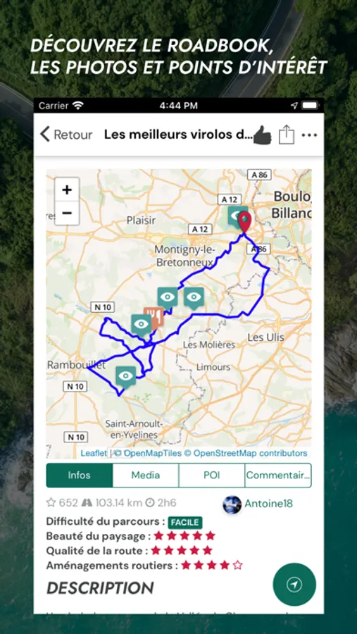 Les balades moto sont agrémentées de tout ce dont vous aurez besoin : photo, points d'intérêt mais également commentaire entre membres.