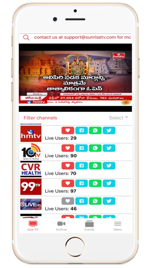 SUNRISE TV is one of the best internet based LIVE, CATCH-UP and Events streaming service, over 100+ free channels including NEWS, MOVIES, SPORTS, RELIGIOUS and many other genres. You can also pick your languages like English, Spanish, French, Hindi, Telugu, Tamil, Gujarati, Punjabi and more, we continuously try to bring as many as channels.