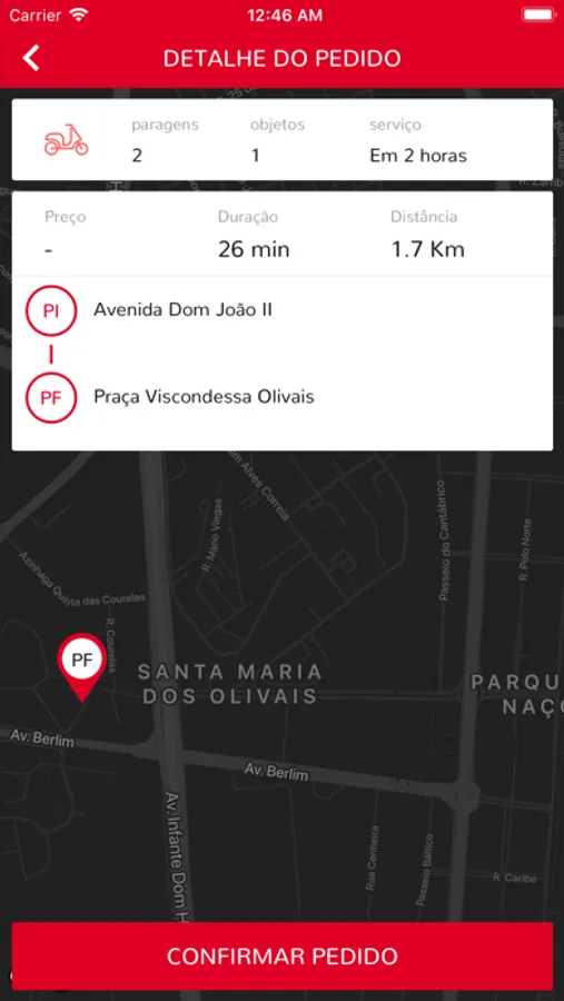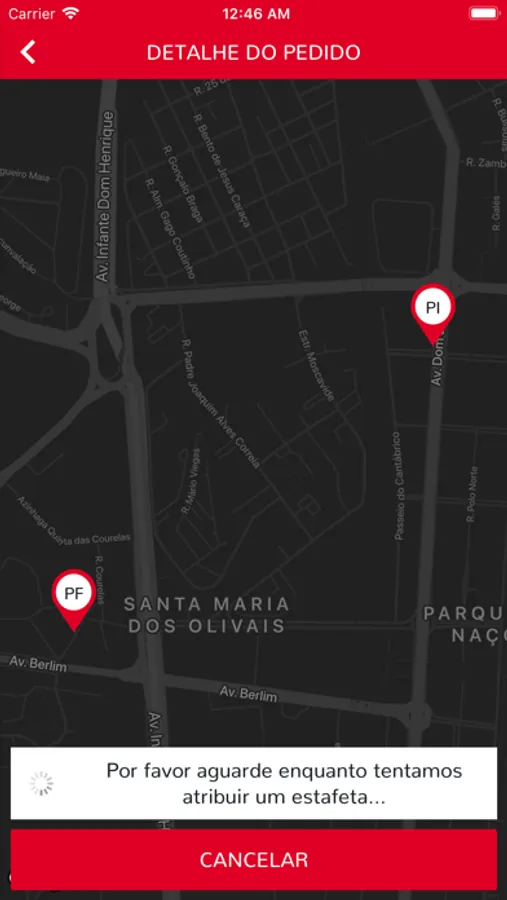 Quando o estafeta está associado, o cliente pode acompanhar através da funcionalidade de LiveTracking o percurso e o serviço a ser realizado.