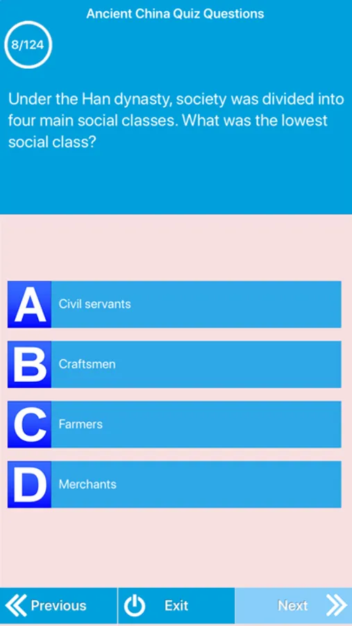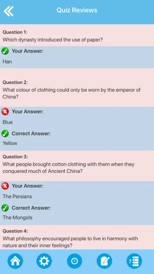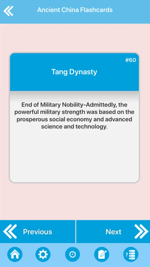 Get ancient china history,culture,life and society knowledge using an intuitive and cool quiz interface. In the meantime study and learn about ancient chinese times using simple and effective flashcard screen.
