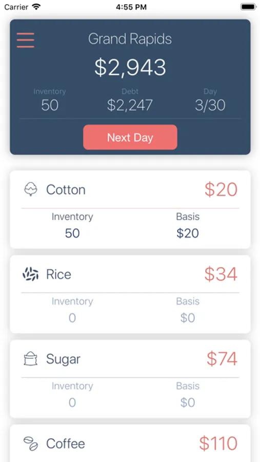 You have 30 days to make the most money you can buying and selling commodities. The market fluctuates and there are police and hijackers lurking at every move looking to impede your progress.