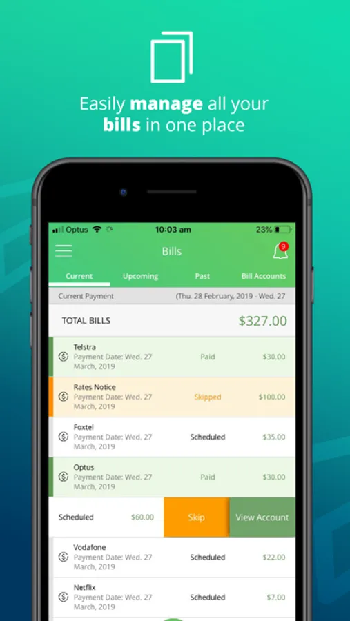 • Know exactly where your money has been spent, what bills have been paid and bills are coming up, by viewing the full history and projected bills from your Easy Bill Pay App.