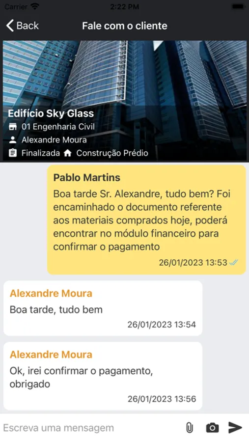 Além de ganhar tempo no gerenciamento dos seus projetos, interagindo com o seu escritório, você pode tornar o relacionamento com o seu cliente mais efetivo, com informações atualizadas diretamente da obra.