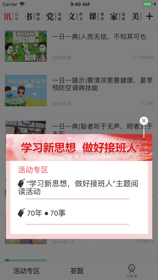 人民日报少年客户端是面向全国中小学德育素质教育的辅助平台,是人民日报社旗下的产品;