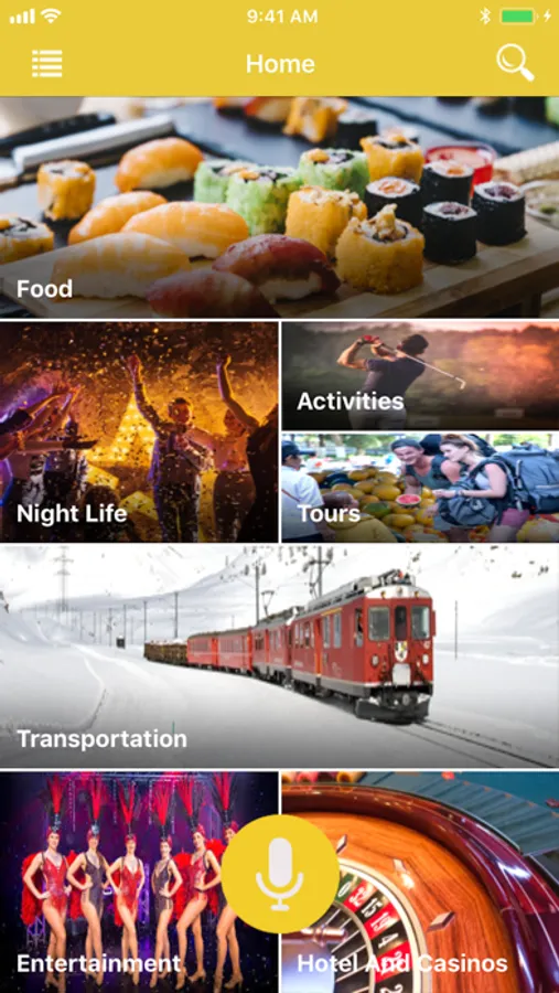 1. Voice Command - Letting you search Food, Nightlife, Activities, Tours, Transportation, Entertainment, Hotel through your voice.
