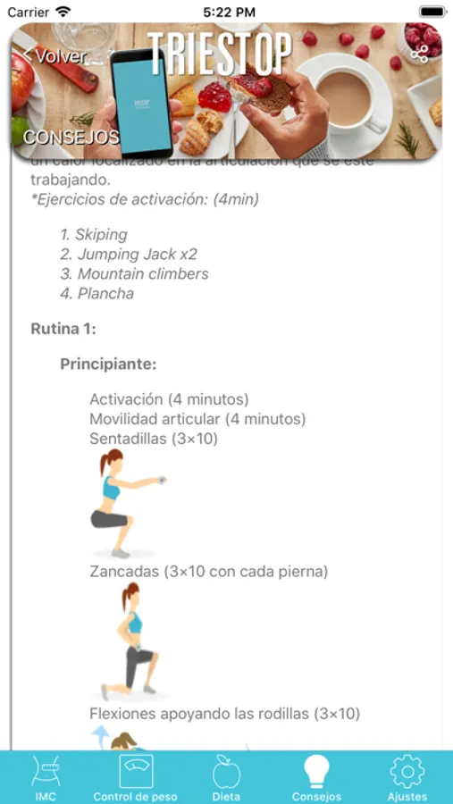 No lo dudes más y empieza a disfrutar de todas las ventajas que te ofrece la app de Triestop. Conseguirás cambiar tus hábitos de alimentación y estilo de vida y alcanzar los retos que te propongas.