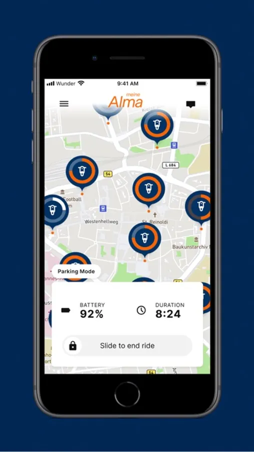 - Intuitiv und schnell: Roller orten, kostenlos für 15 Minuten reservieren und ab geht’s für 19 Cent pro Minute