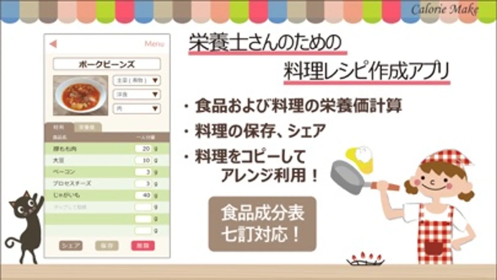 「栄養士のレシピ」は、栄養計算ソフトを手掛ける東洋システムサイエンスがノウハウを活かして作成した、栄養士さんのためのレシピ作成アプリです。