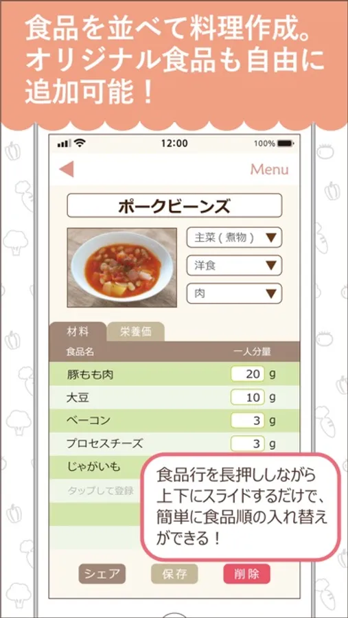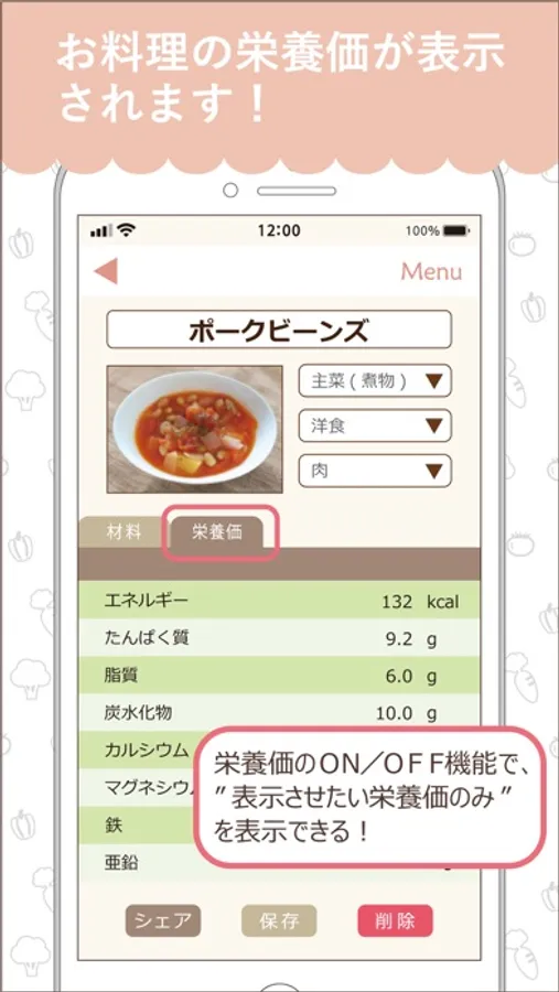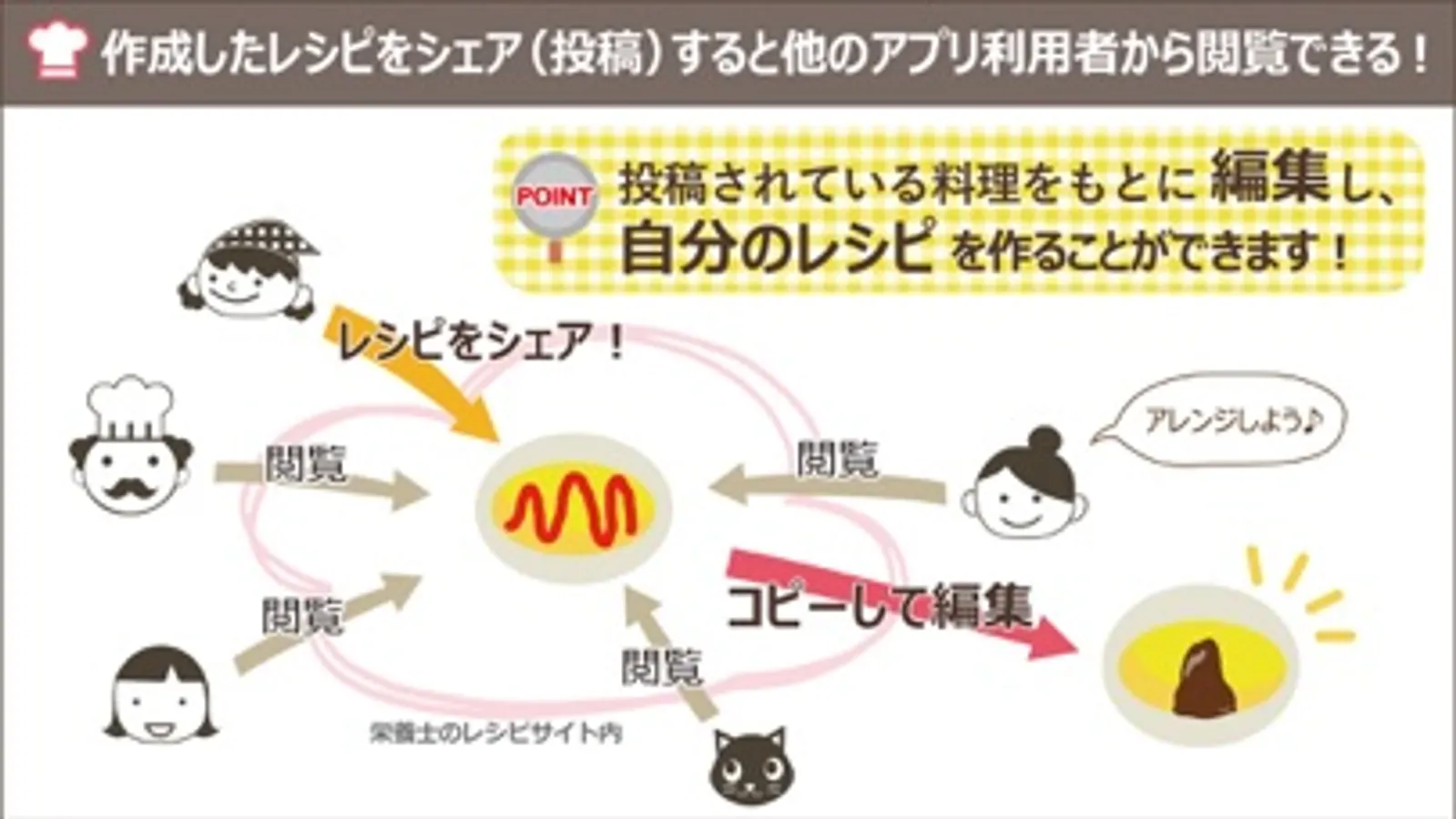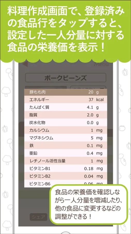 手軽に栄養計算できて料理をみんなでシェアできます。