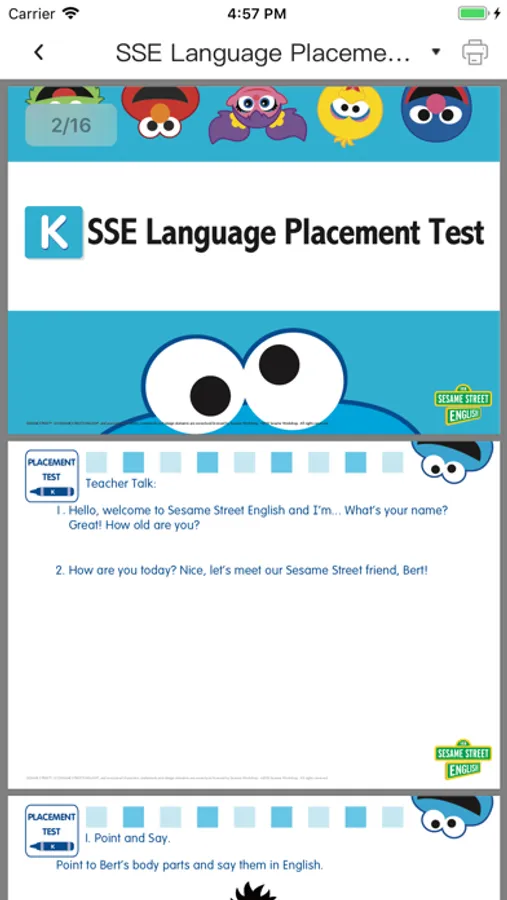 SSE教学中心是一款为芝麻街英语的老师提供的移动应用。SSE教学中心提供三大功能:我的课表,我的试题,我的班级。老师可以通过此App查看自己的排课列表、测试试题内容,也可以通过我的班级功能查看教师管理的班级信息和学生信息。在我的教材中老师可以通过App查看所有已经分配给教师的试题内容,试题内容包括pdf,音频,视频,html等多种课件内容形式,让老师对于学生的学习情况更了如指掌。当试题形式为pdf格式的时候,教师可以通过右上角的打印按钮,通过Airprint直接打印出老师需要的纸质试题内容。