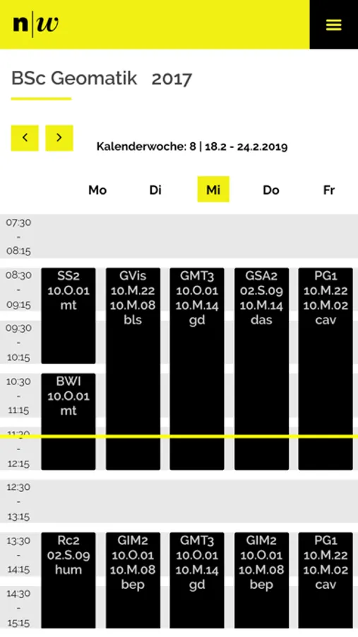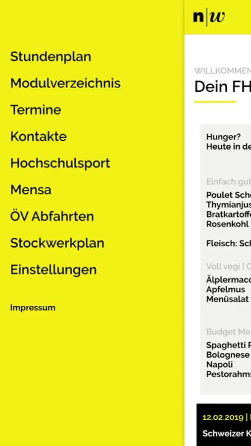 Enthalten sind die Stockwerkpläne des Gebäudes, der Stundenplan, die Personensuche, das aktuelle Menü der Mensa sowie weitere wichtige Informationen für den Alltag an der Fachhochschule.