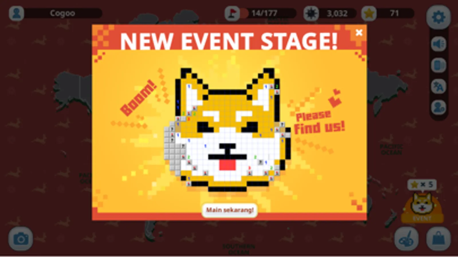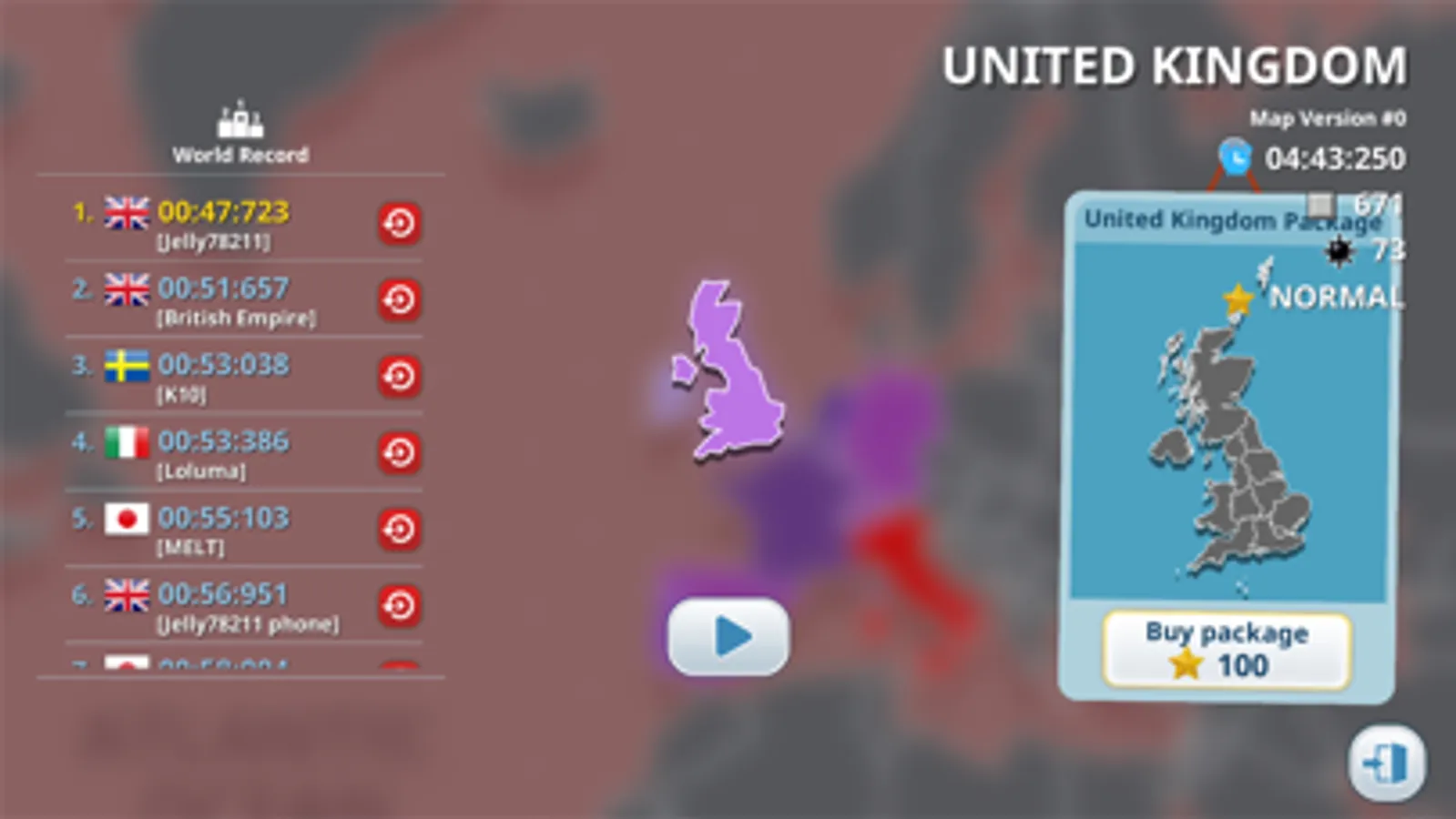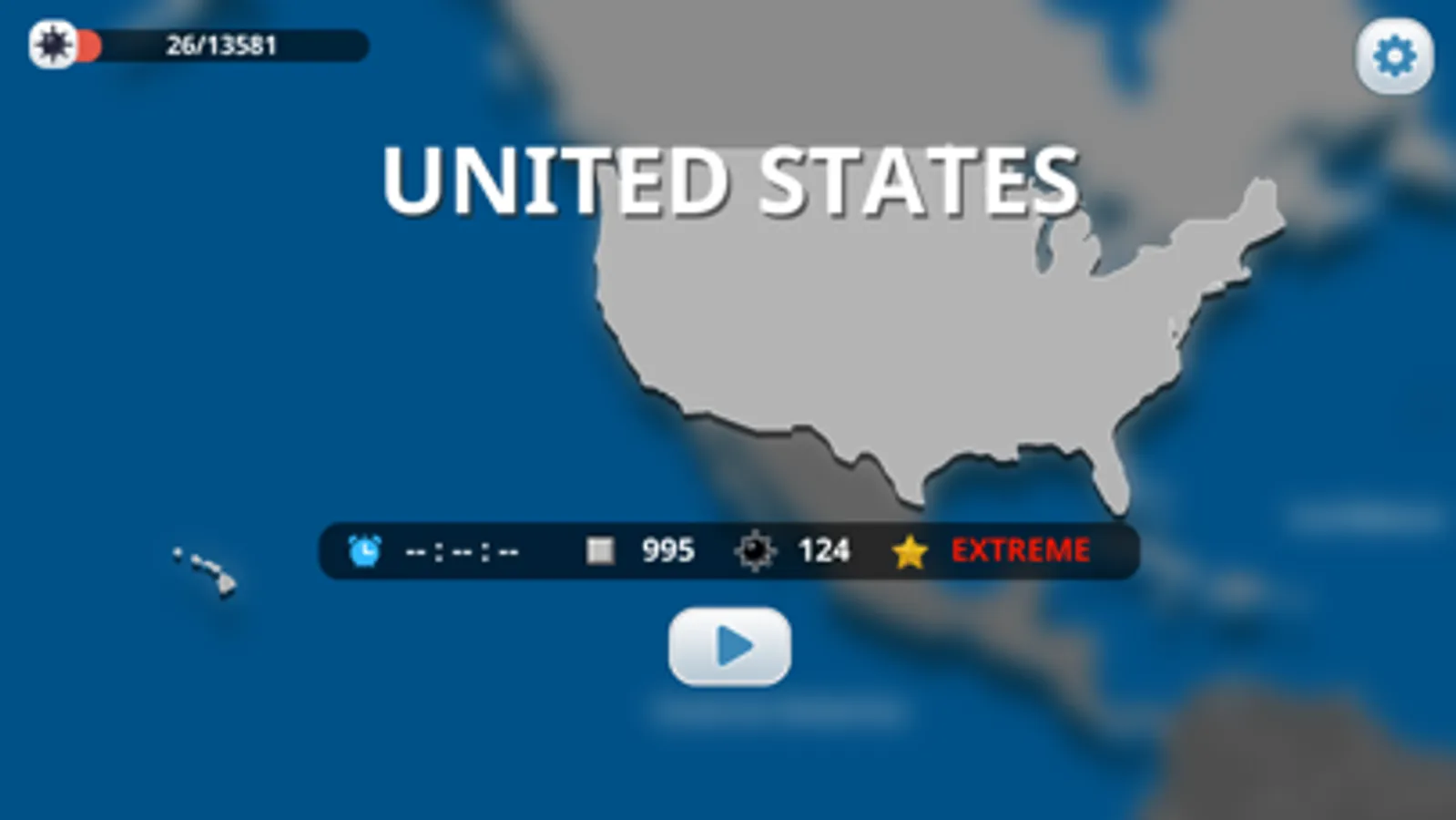 The objective of the game is to clear a country map containing hidden “mines” or bombs without detonating any of them, with help from clues about the number or neighboring mines in each field. The player is initially presented with a world map. The Player can select and choose to play a specific country by touching the country on the map. The game is played by revealing squares of the grid by touching each square. If a square containing a mine is revealed, the player loses the game. If no mine is revealed, a digit is instead displayed in the square, indicating how many adjacent squares contains mines. If no mines are adjacent, the square becomes blank, and all adjacent squares will be recursively revealed. The player uses this information to deduce the contents of other squares, and may either safely reveal each square or mark the square as containing a mine.