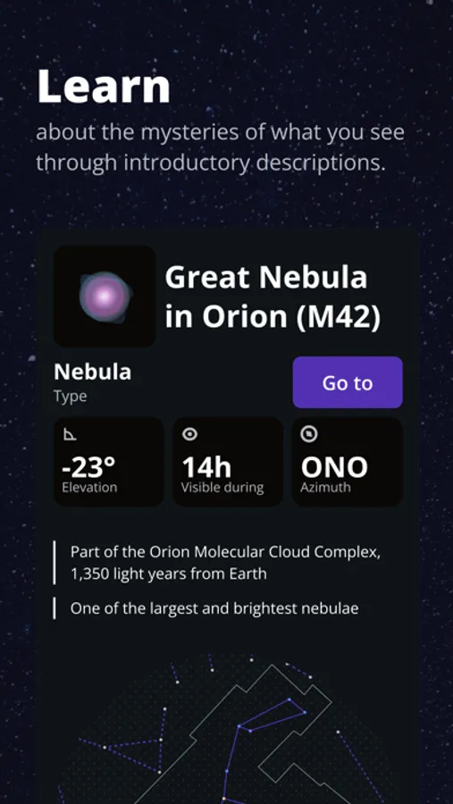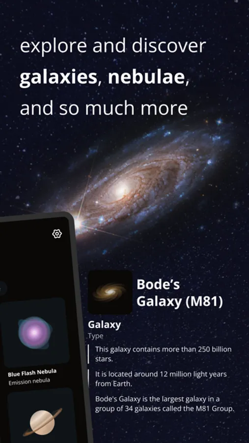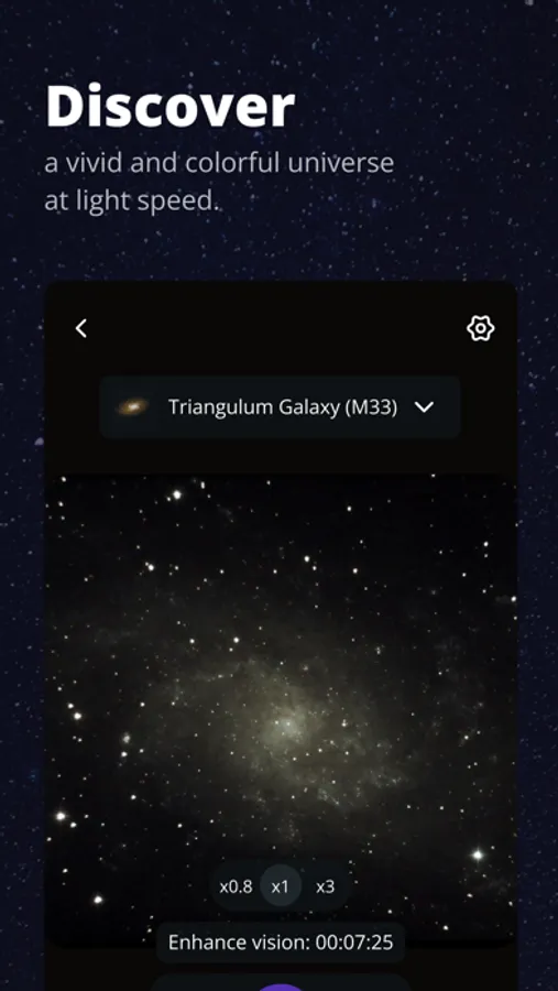 Explore the night sky : Choose an object (galaxies, nebulae, star and more) on the app and observe it, live. The Unistellar eVscope does all the pointing and tracking autonomously. Through the app, you can also set up your sky observation window.