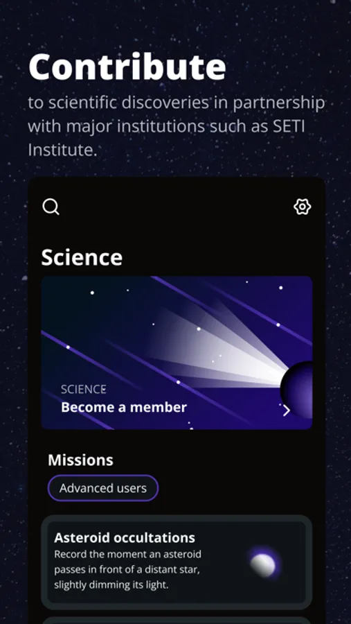 Become a citizen astronomer : In partnership with the SETI Institute, join the first global network of citizen astronomers, observing and contributing to scientific discoveries, from asteroid occultations to exoplanet transits and planetary defense.