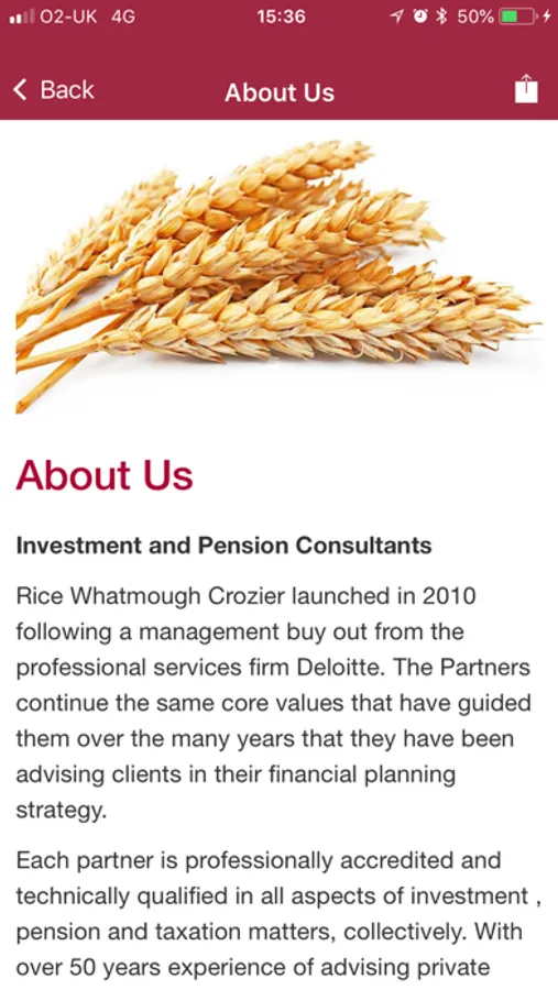 The Rice Whatmough Crozier app is an Investment and Pension Consultants application built for Rice Whatmough Crozier. The app features financial calculators, magazines, tax tables and contact details. This app allows our clients to upload supporting documents through the iOS camera function or from their photo library. The Rice Whatmough Crozier app comes with built in push-notifications enabled keeping our users updated with all the latest financial updates.