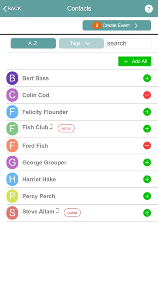 A club can have a list of contacts - for invitation only events, contacts are chosen from this list. Contacts can be imported from a spreadsheet or from your phone's contact list. The contacts are "part of the club" and are shared between Club Administrators.
