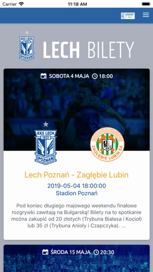 The application allows you to buy tickets and season tickets for matches played at the Municipal Stadium in Poznan. The official application of KKS Lech Poznań integrated with the ticket portal bilety.lechpoznan.pl. Buy and display tickets through the application.