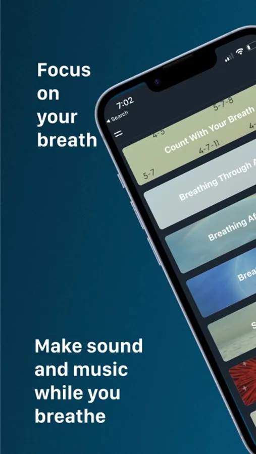 Breath Player allows you to Input your breath in a variety of ways to find what works best for you. You can input your breath via tap, slider, or belly mode. You can also select from an ever-growing number of customizable sound and music experiences including thunderstorms, wind, ocean waves, treetops, waterfalls, binaural spaceships, counting with pianos, clocks, and many more. Hear Ocean Waves crash and pianos play up and down with the rise and fall of your breath.