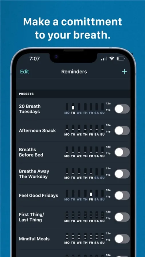 With Breath Player you can create your own breathing account and level up as you go. Track your daily streaks, and count your breaths along with HealthKit and mindful minutes integration.
