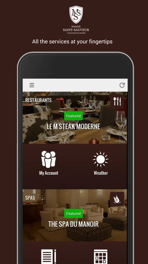 Mosino Hospitality Platform for Hotel Manoir Saint-Sauveur offers hotel guests many services ranging from digital concierge, digital signage, various reservations options as well as entertainment. Choose from a range of services the hotel offers.