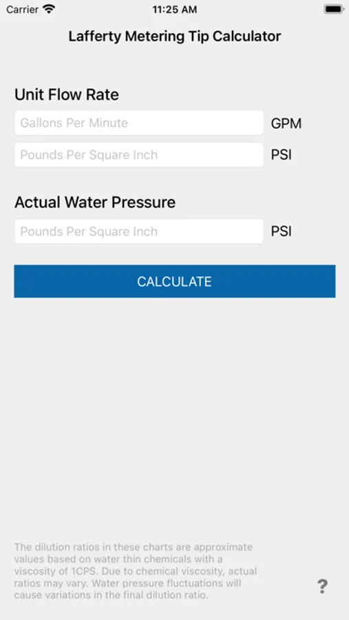 The Metering Tip Calculator will determine the dilution ratio for each color of metering tip based on the actual water pressure supplied to the specific unit being installed.