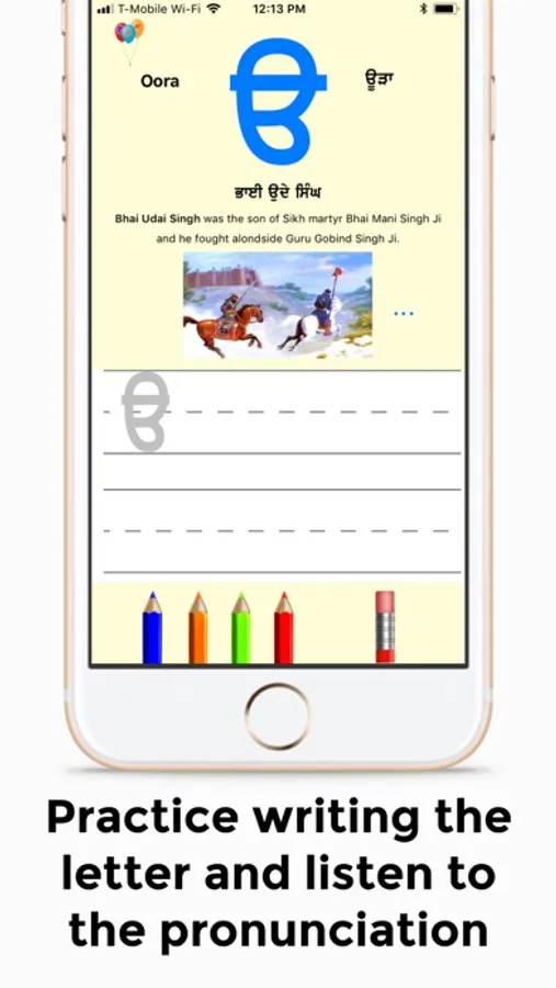 • Most letters are also associated with multiple facts from Sikh history, so not only do you get to learn the Punjabi language, but you can also learn more about Sikhism! A person, place, or other fact that starts with the letter and is important in Sikh history will be displayed on that letter's page.
