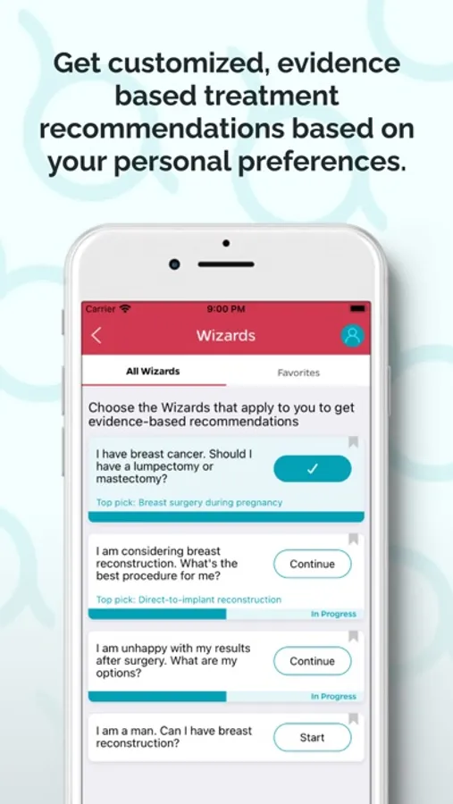 Need help deciding between procedures? After taking your individual situation and preferences into account, the Wizard provides evidence-based recommendations for you to discuss with your surgical team. If your preferences change after researching your options, you can change your answers to the Wizard’s questions any time to get an updated treatment recommendation.