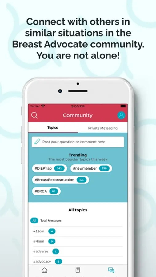 Breast Advocate® provides welcome support. Connect with others who have faced or are facing the same decisions or issues. You don't need to face this alone.