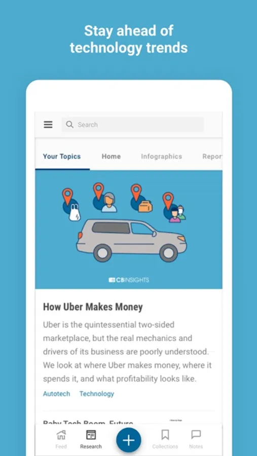CB Insights mobile app ensures you are always prepared for meetings, presentations or conferences by putting the power of our research team, data and visualizations in your pocket.