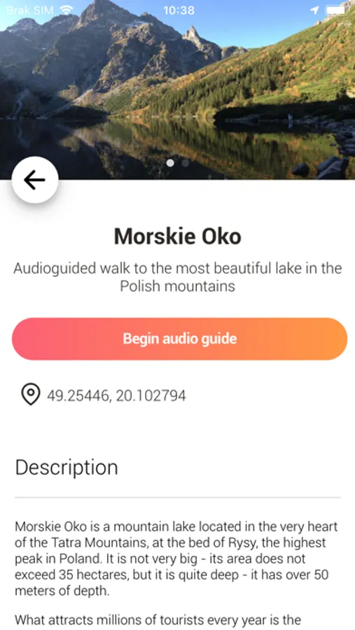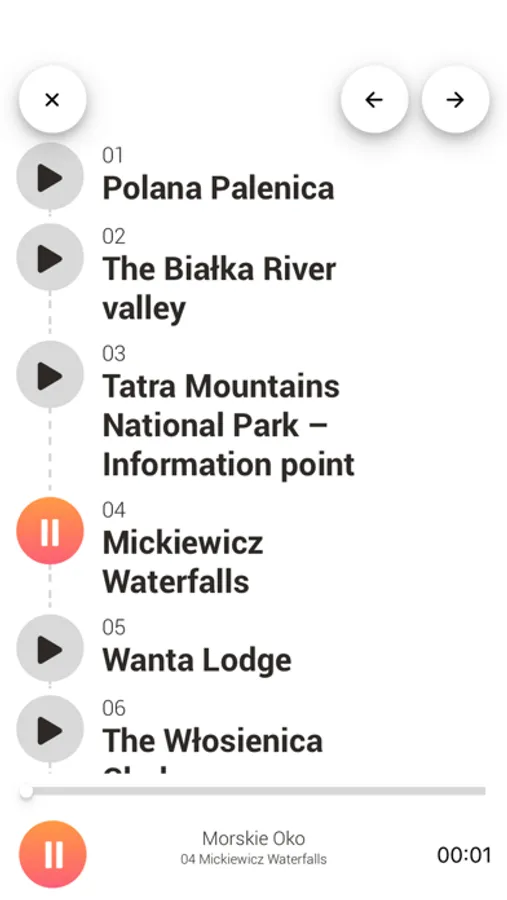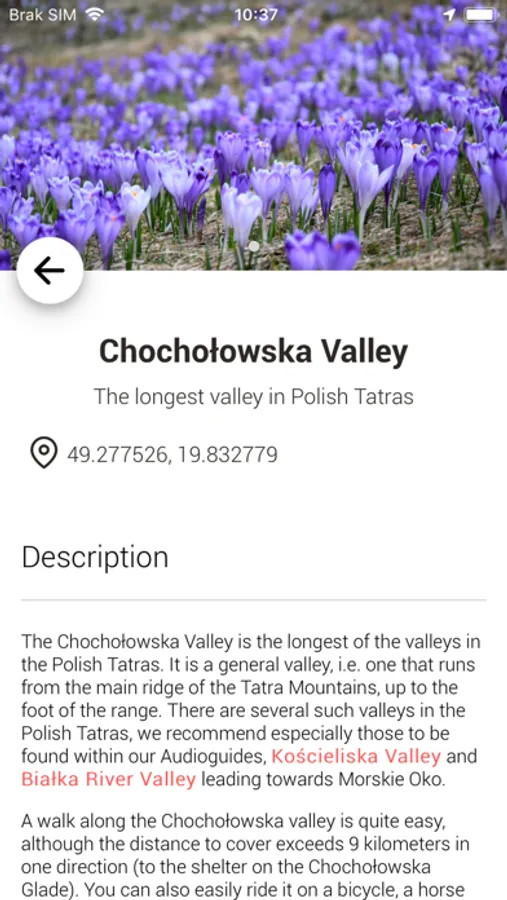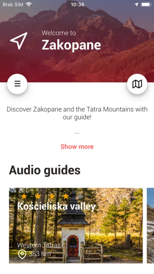 1. Penkis išsamius audiogidus lietuvių kalba po svarbiausias lankytinas vietas. Tarp jų: gidas po Kasprovo Viršūnę (kurio taip pat galite klausytis kildami į kalną keltuvu), Morskie Oko ežerą, Kościeliska slėnį ... O taip pat po Krupówki gatvę Zakopanėje ir žymųjį Gubaluvkos kalną.