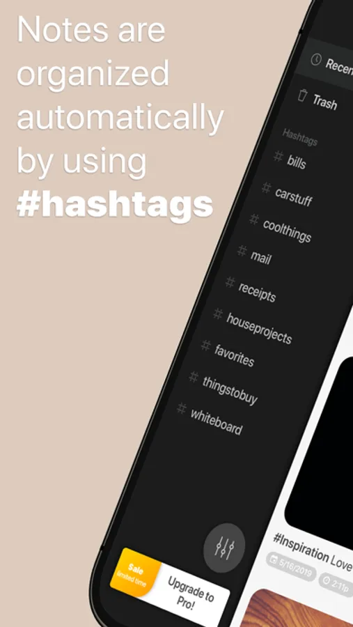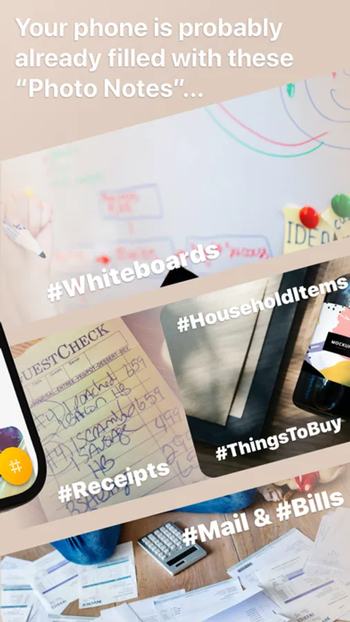 Hashtags are simpler and way more convenient than creating albums and folders to organize your photos, especially these reminder note photos! Think of it like a document scanner mixed with an organized file cabinet, except it's not limited to only documents or PDFs and can be used to document and reference anything that can be captured by a photo! Multiple hashtags can be added to any photo note, so you can find these organized pics in multiple places. And the organization is managed automatically for you by simply adding hashtags to your notes!