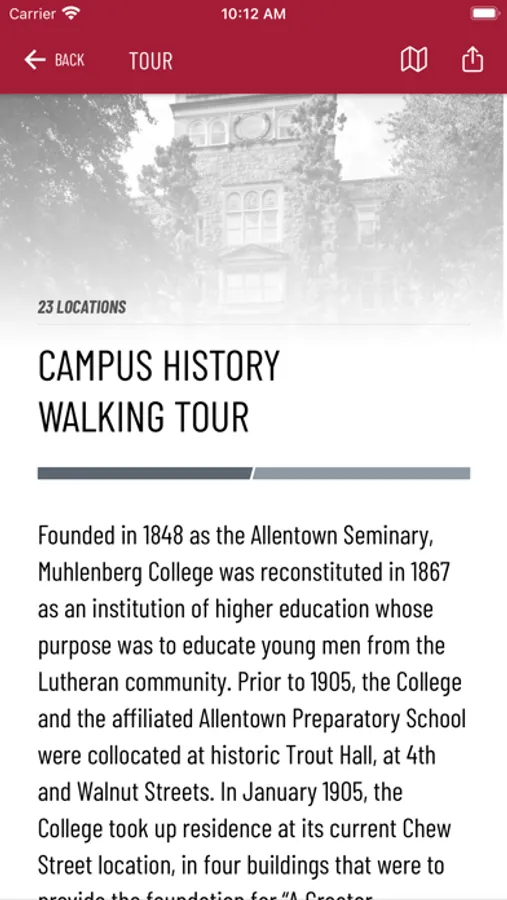 Muhlenberg Pathways to Present is a free app that puts the history of Muhlenberg College at your fingertips. Take a self-guided walking tour of the campus to learn more about the individuals, buildings, and events that shaped the College. Explore its history though archival materials, interviews, and student research made available through Trexler Library’s Special Collections.