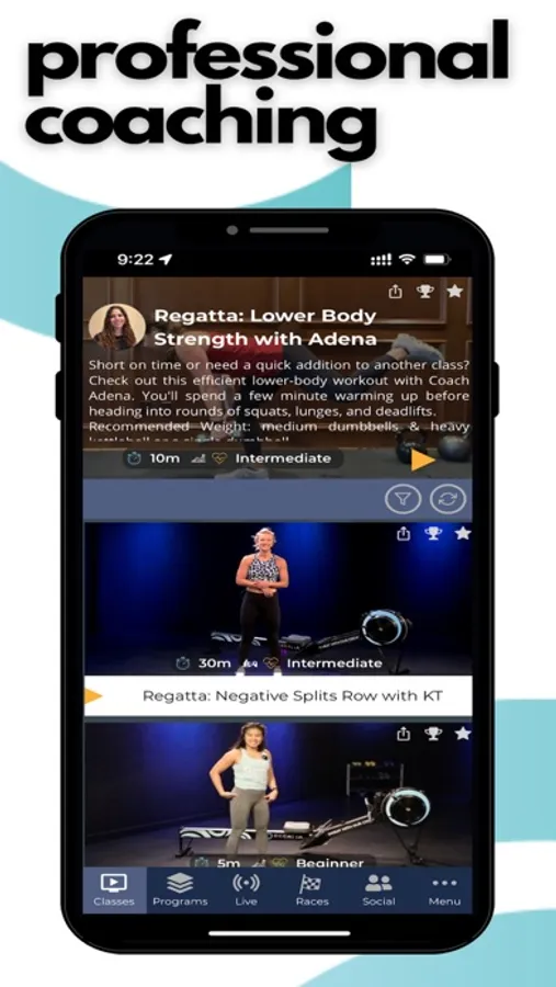 Regatta is a connected indoor rowing experience made for indoor rowing machine users. Train and race live with others on real-time leaderboards, take classes from rowing coaches and track your progress.