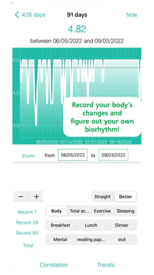 It uses Pearson correlation calculations to scientifically manage your body and mind, providing advice on how your body's signals are related to each other over time.