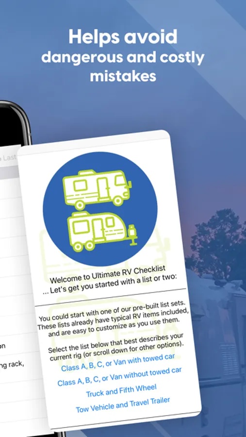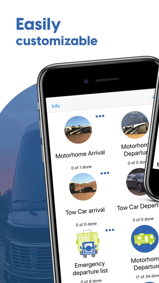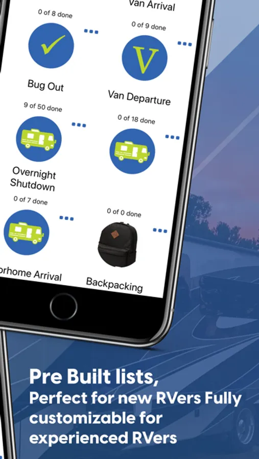 Simple to use pre-built and fully customizable lists that walk you through the necessary tasks to get you set up faster and begin enjoying your camping time.