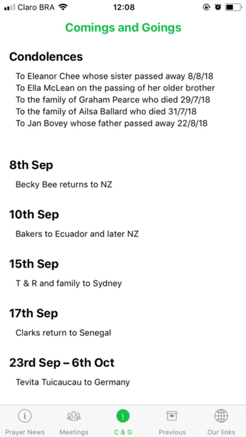 -C & G: This lets you know the Comings and Goings of people to and from WEC New Zealand, as well as if there are any celebrations or condolences in that month.