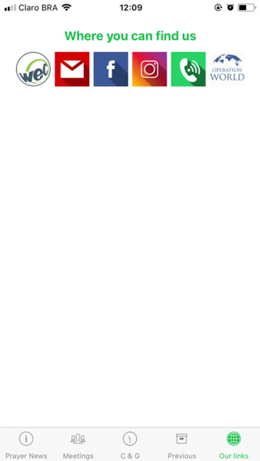 -Our Links: This gives you the options of how to connect and interact with us (website, social media and email) as well as Operation World.