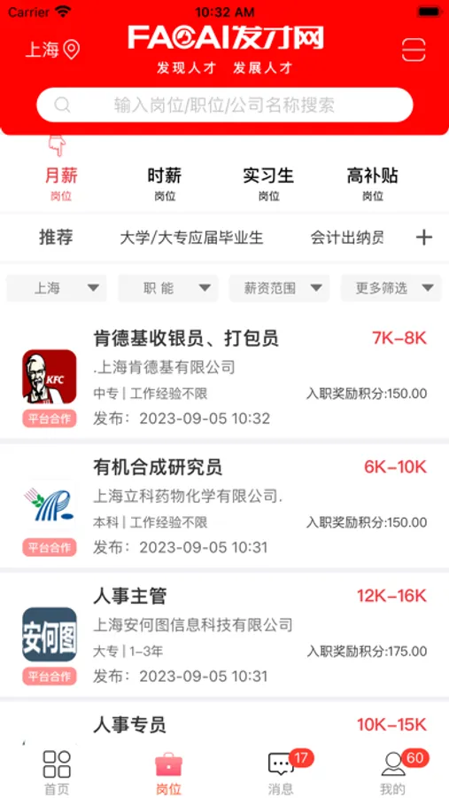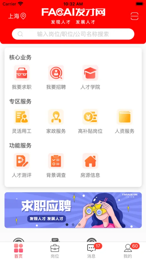 发才网专注互联网招聘求职找工作APP,求职者需要的工作与招聘者发布的岗位精准匹配,秒找工作,秒找人才,发才网日均在线百万岗位,直接沟通,当场拍板,闪电入职,发才网APP发布招聘岗位免费,编写求职简历免费。